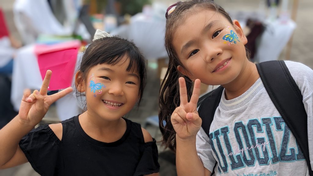 ペイントに必要な時間はお一人あたりワンポイントで3~5分程度、お顔半分のペイントで5〜7分程度が目安になっております。(もちろんメニューによって多少変わります)